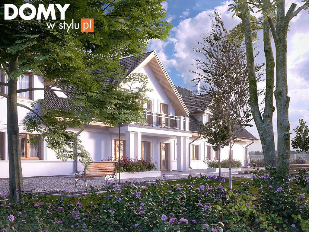 Horyzont to projekt domu spokojnej starości, dwukondygnacyjny, spełniający wysokie standardy dotyczące domów opieki społecznej. Budynek utrzymany został w stylu tradycyjnym. Jasną elewację połączono z kamiennymi narożnikami, a ciemny, antracytowy dach przykryto blachodachówką. Zastosowana podbitka w kolorze naturalnego drewna świetnie nawiązuje do koloru stolarki.
