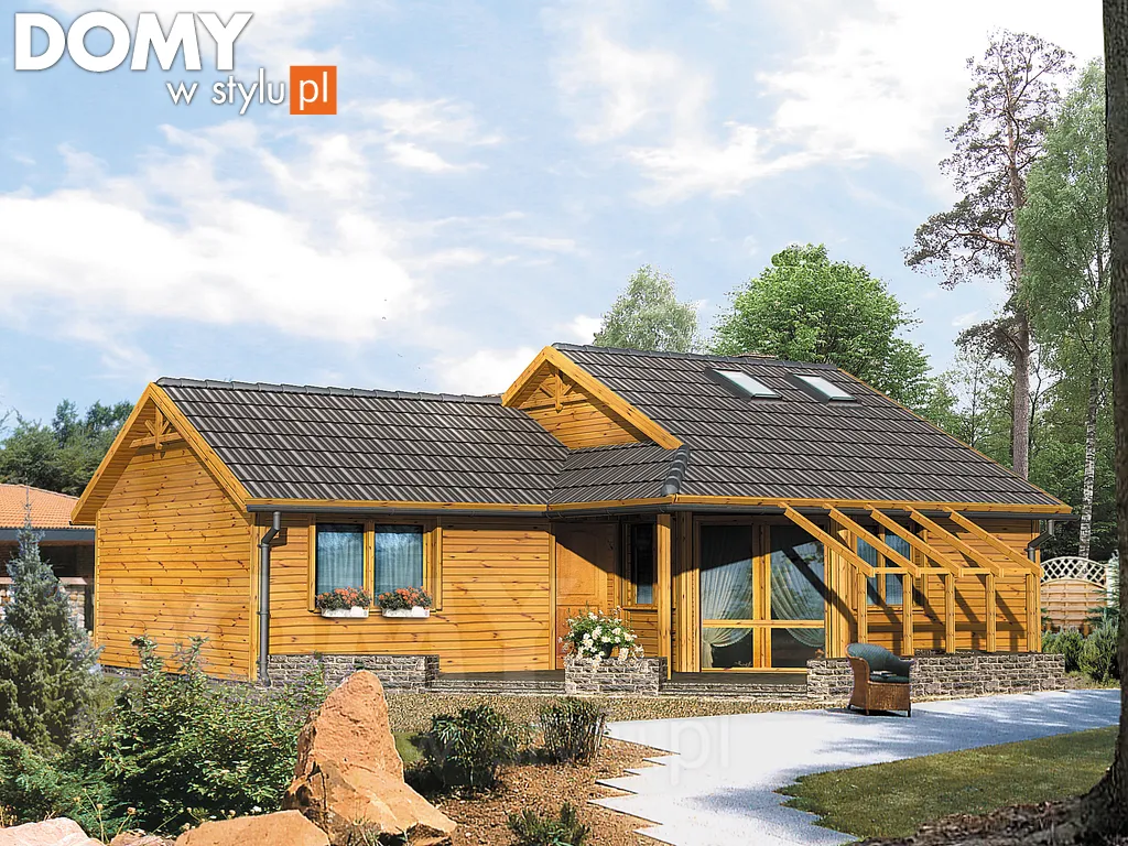 Dom letniskowy parterowy z częściowo zagospodarowanym poddaszem, niepodpiwniczony, przeznaczony dla 3-osobowej rodziny. Dom posiada bogaty program funkcjonalny. Na parterze zaprojektowano pokój dzienny połączony z otwartą kuchnią oraz łazienkę i dwie sypialnie. Warto zwrócić uwagę na dodatkowe pomieszczenie na poddaszu, które może zostać wykorzystane na przykład jako pokój hobby. Do praktycznych stron projektu można zaliczyć spiżarnię przylegającą do kuchni oraz kominek.